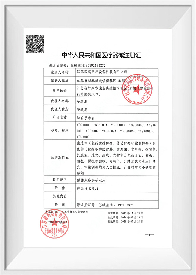 Giấy chứng nhận đăng ký bàn mổ toàn diện