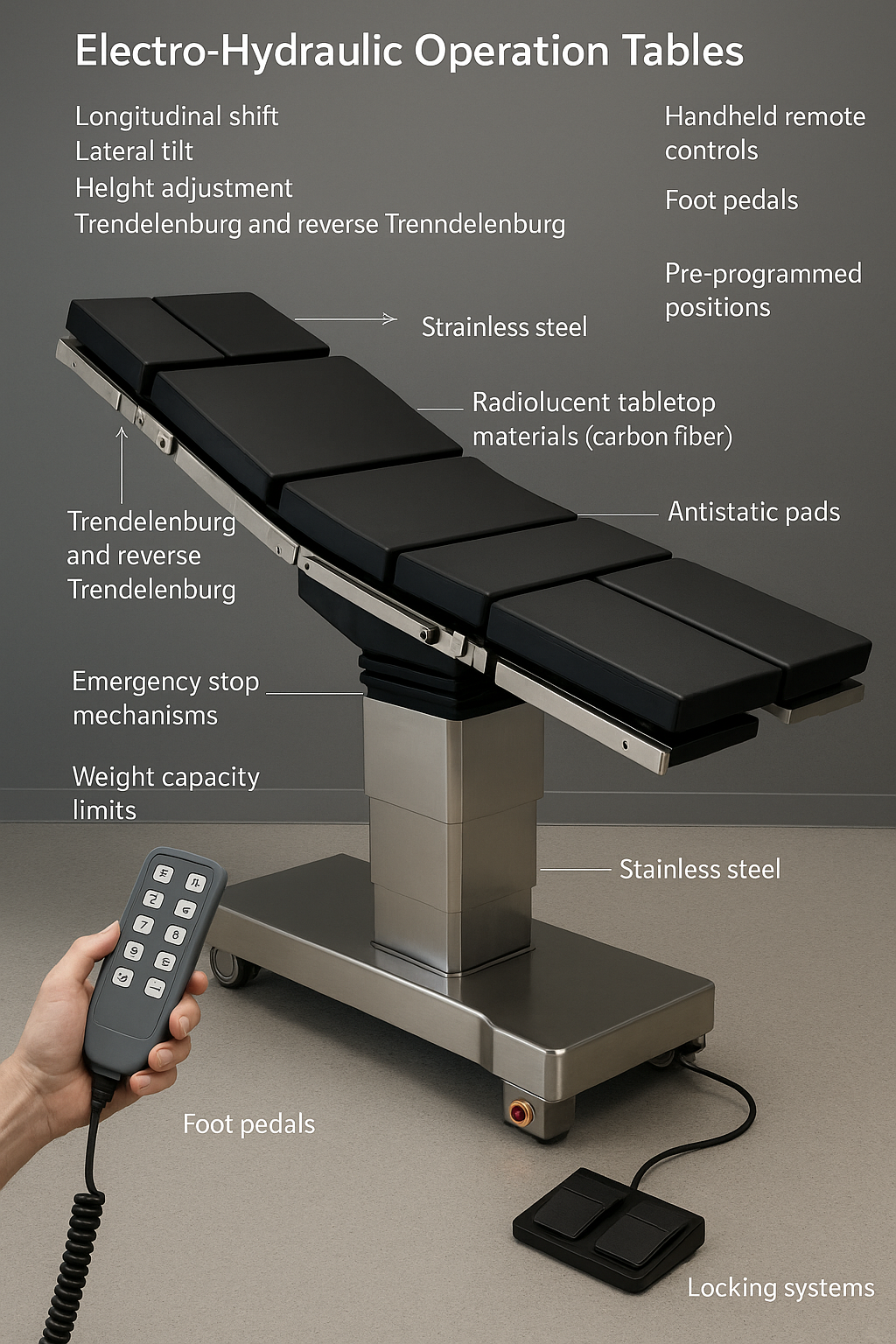 Những tính năng này minh họa cách hệ thống điện-thủy lực hỗ trợ nhiều yêu cầu phẫu thuật trong khi vẫn duy trì sự ổn định của bệnh nhân.