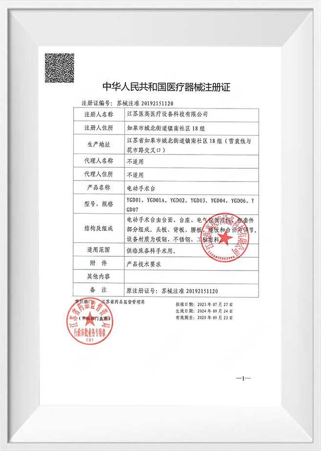 Là một doanh nghiệp đã vượt qua ISO 9001, ISO 13485, ISO 14001, ISO 45001 , và các chứng nhận hệ thống quản lý khác, Công ty TNHH Công nghệ Thiết bị Y tế Giang Tô Yigao coi chất lượng sản phẩm là huyết mạch của mình. Bàn mổ của chúng tôi tuân thủ nghiêm ngặt tiêu chuẩn CE , có nghĩa là chúng không chỉ đáp ứng các yêu cầu về an toàn, sức khỏe và môi trường của thị trường Châu Âu mà còn thể hiện đẳng cấp quốc tế hàng đầu về thiết kế và sản xuất sản phẩm.