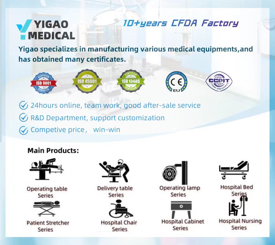 Chúng tôi là một nhà máy chuyên nghiệp tập trung vào nghiên cứu và phát triển, sản xuất, kinh doanh và dịch vụ thiết bị y tế. Các sản phẩm chính của chúng tôi bao gồm bàn mổ, giường sinh, giường bệnh, v.v. và chúng tôi cam kết đáp ứng nhu cầu đa dạng của các cơ sở y tế hiện đại.