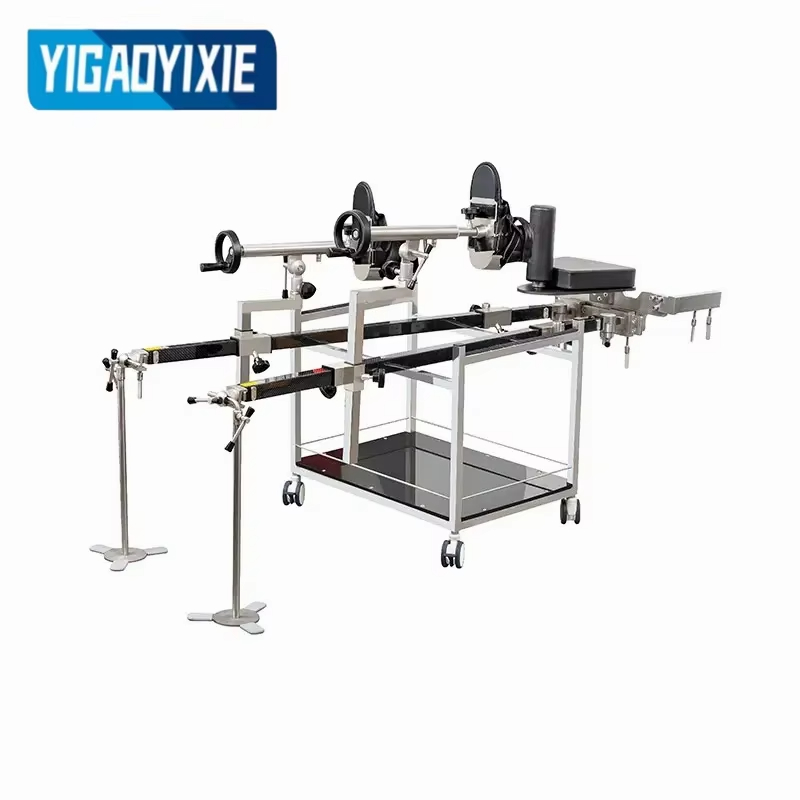 Khung kéo phẫu thuật này, được thiết kế để hỗ trợ bệnh nhân và kéo chi dưới của họ khi sử dụng cùng với bàn mổ trong quá trình phẫu thuật, tự hào có kết cấu cao cấp với thân chính bằng sợi carbon và các bộ phận kim loại bằng thép không gỉ 304, trong khi các bộ phận điều chỉnh góc chính của nó được gắn chặt với răng mặt và được đúc chính xác thành một khối để tăng cường độ ổn định và độ bền. Được trang bị hộp số cơ học cho lực kéo và máy kéo xoay 360° cho phép định vị linh hoạt ở nhiều tư thế và góc độ khác nhau, nó hoàn toàn tương thích với máy C-arm ở bất kỳ vị trí nào mà không có bất kỳ điểm mù hoặc chướng ngại vật nào, khiến nó trở thành công cụ phụ trợ lý tưởng cho nhiều tình huống phẫu thuật.