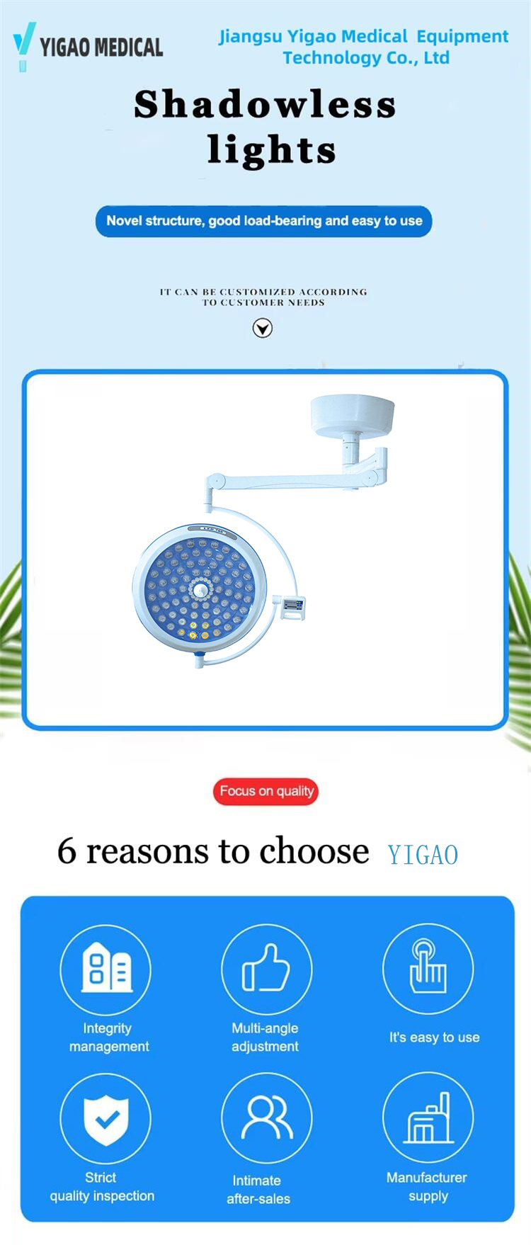 8. Lựa chọn các loại vũ khí nội địa và phong cách Châu Âu, với thiết kế sáu khớp không bị trôi, thiết kế tinh gọn của đầu đèn phù hợp hơn với yêu cầu thiết kế của phòng mổ dòng chảy tầng tinh khiết hiện đại và thiết kế ngoại hình thời trang mang đến điểm nhấn mới cho phẫu thuật bệnh viện.